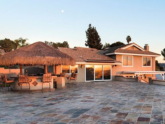 Breathtaking panoramic, golf course and city lights views await! Double entry doors lead into this versatile floorplan affording privacy, views and a huge usable rear yard. Fabulous great room concept living is accented with handsome stone flooring, custom built-ins, and a gourmet chef's granite kitchen boasting every desired amenity such as professional six-burner range, stainless built-in refrigerator, dishwasher and beverage cooler. Center island is complete with a butcher block countertop, perfect for everyday meal prep while enjoying the amazing backyard views. Lower level features an oversized family room with stone-finished fireplace, sliding glass doors to the expansive yard, an adjacent bedroom, bathroom and access to the laundry room and garage. Upstairs leads to the sumptuous primary suite with plush carpet, handsome plantation shutters, and an inviting upgraded bath arena with generous walk-in shower and dual vanities. Two additional bedrooms and a full dual vanity bath complete this level. Tremendous entertainer's backyard features an expansive stone accented patio, fun Tiki Hut BBQ center and cozy firepit. Additionally, there is a large grassy lawn area that is perfect for outdoor adventures. Gated RV parking, three-car garage, and a generous 15,000 SF lot provides a versatile setting with unlimited possibilities. Attends award winning schools, with just a short stroll to Glenknoll Elementary.