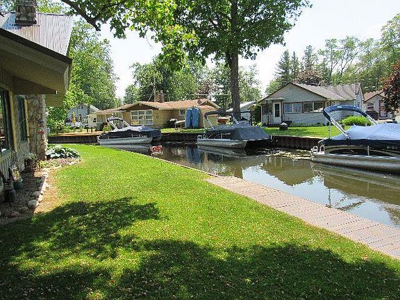 167 feet of Canal ! This fantastic property has a lot to offer for year round enjoyment ! With so much charm and quality built in mind featuring knotty pine walls and wainscot . Open floor plan which includes a spacious eat-in-kitchen with wainscot cabinetry , living room with wood burning fireplace and views of the water . Family room has stone floor to ceiling gas fireplace , vaulted ceiling and windows throughout . First floor master bedroom with cedar closet . Ski lights , updated systems with central air makes this property move in ready . Large deck to enjoy summers with ample parking . Property is in Pristine condition with storage through out, owners utilized every available space for storage . Plenty of space for all your winter and summer toys ! Situated on the northern basin of Chautauqua lake . Horseshoe bend is a tucked away area of desirable canals . Call for your private showing