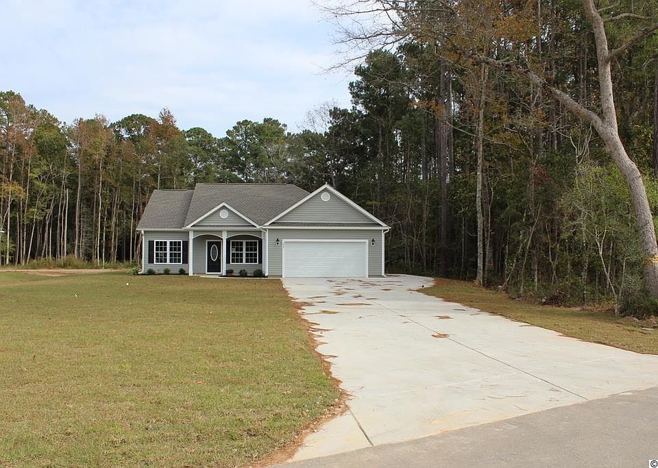 NO HOA fee, large wooded home sites! Beautiful and popular Pecan plan has open living areas, split bedrooms, front porch and large rear screened porch. Living area has vaulted ceiling, ceiling fan with light, spacious dining area, large kitchen with lots of solid wood, bead board style cabinets with crown molding and knobs, stainless steel appliances including a side by side refrigerator, wrap around breakfast counter with upgraded rounded edge counter tops and pantry closet. Wood-look, vinyl flooring thru-out the home. Master bedroom has vaulted ceiling, fan with light, large walk-in closet. Bath with garden tub and separate shower and a raised height vanity with 2 sinks. Split bedroom floor plan. 10' x 25' concrete pad for RV. Upgraded interior trim includes 3 1/4" casings and 5 1/4" baseboards. Low E glass windows, energy efficient homes. Boat and RV parking allowed. Spacious finished/painted 2-car garage, with automatic door opener, pull down stairs to attic storage above. Irrigation system, gutters, sodded and landscaped yard. Close to International Drive, quick/easy access to Myrtle Beach. Video is for illustrative purposes only and may be of similar home built elsewhere. Square footage is approximate and not guaranteed. Buyer is responsible for verification.