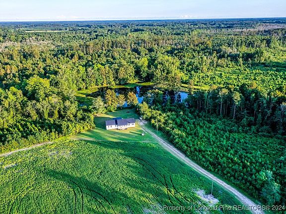Situated on over 86 acres of land and only a little over a hour away from the beautiful Carolina Coast, this property has much to offer. With 35 acres of cropland, 18 acres of timber and a 3-acre stocked pond there will be much wildlife to share this property with you. From wild turkeys, roaming deer, beavers and more. There are two houses located on the property. The main house is nestled down a dirt road at the back of the property. It features 3 bedrooms,2 baths, 2 car garage and a large living and dining space. Brand new HVAC was installed August,2024. Start your mornings with a cup of coffee while you sit on the screened in back porch and watch the sun rise over the pond. It has massive views from both the front and back porch and is very secluded.