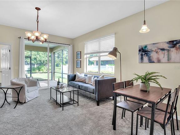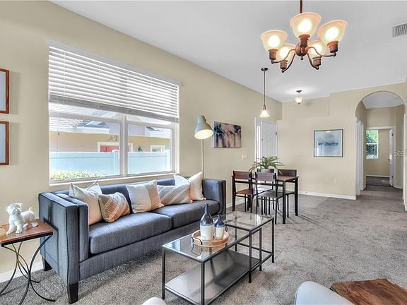 Darling townhouse located in the sought-after gated community of Chelsea Oaks. This split plan home offers 3 bedrooms, 2 baths on ONE single story. The cheerful Kitchen has wood cabinets that offer ample storage and counterspace along with breakfast bar. The Living Room and Dining Room combo is open and airy, with New Carpet and New Paint throughout. The Master Bedroom has a private salon bath with garden tub, seperate shower, dual sinks, and large walk-in closet. Two additonal bedrooms are available along with hall bath. You will love the private screened and covered lanai over looking the wooded area and beautiful back landscaping. This end unit offers a large 2 car garage with pavered driveway. Gated community, Community Pool, Fitness Center. Maintenance Free Life Style. MOVE-IN-READY!