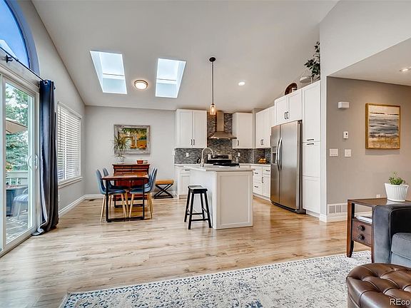 If you are looking for a friendly inviting neighborhood that offers all the conveniences of every day living this is the home for you. Amazing walking trails, views of the mountains, and playground right up the street on Welte walking path and Cheese Ranch. Highlands Ranch HOA has many ammenties including kids camps, pools, fitness center, clubhouse, and much more. Home has been lovingly remodeled with a new kitchen, new laminate flooring, new bathroom with shiplap and is completely move in ready. Totally open floorplan on main level living allows everyone to interact whether they are sitting by the fireplace, watching tv, at the sit up bar, in the kitchen, or at the dining table. Choose between the balcony off the family room or the lower brick patio to enjoy the large trees and beautifully maintained backyard. Be prepared to fall in love with the most charming and captivating home in Highlands Ranch on the market!