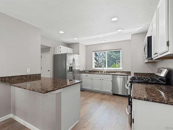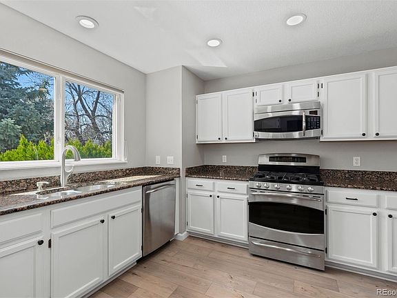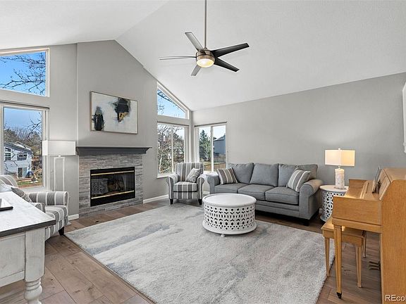 Step inside this beautifully updated 3-bedroom, 3-bathroom home and experience a perfect blend of modern elegance and everyday comfort. The wide open main floor welcomes you with soaring vaulted ceilings, new interior paint, and new flooring that flows seamlessly throughout. Bathed in natural light, the main living area creates an inviting space for both relaxing and entertaining. The updated kitchen is ideal for hosting, cooking, or simply enjoying a casual meal. Directly off of the kitchen gives you the opportunity to step out onto what the current owner proudly calls the best spot in the house: a private outdoor deck retreat. Built with low-maintenance TREX decking and enhanced with built-in lighting, this space is fully surrounded by lush, mature trees during the spring, summer, and early fall months offering unparalleled privacy and tranquility. The perfect space for a quiet morning cup of coffee, or a private evening cocktail. Back inside and heading upstairs, the spacious primary suite continues the quality of the lower level remodel with vaulted ceilings and an en-suite bath featuring dual sink vanity, a walk-in closet, and a private shower/water closet—mirroring the high-end finishes of the main level renovation. This Highlands Ranch gem combines thoughtful updates, a functional layout, and an unbeatable location—making it a must-see for anyone looking for their next dream home. Round all of this out with a full walkout basement which backs to a greenbelt, brand new exterior paint, and the best of all ... It's south facing exposure truly make this home the total package! Schedule your showing TODAY and don't forget to ask about what furniture items can be included with the sale of the home!
