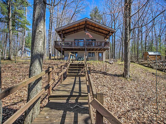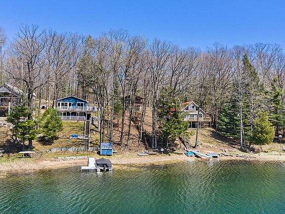 First time on the market! This custom built year round cottage on Blue Lake is being sold by the original owner who designed the home! Water views from almost every room, and unobstructed panoramic views from the huge wraparound deck. Main floor primary bedroom, full bath, kitchen with custom cabinets and living/dining room with floor to ceiling water views. Lower level has 2 bedrooms, full bath, bonus room & laundry. Blue Lake Association www.mibluelake.org has 250 Acres surrounding the lake and homes that promotes a diverse wildlife habitat and prohibits backlot development. Ensuring peaceful enjoyment for generations to come!