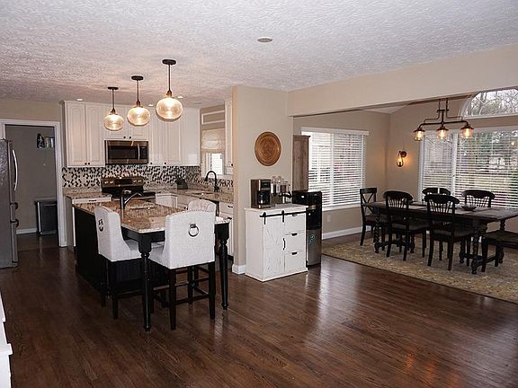 Nicely updated 4BR, 2.5BA 2-story. Beautiful gourmet granite eat-in kitchen w/island, SS appl & adj vaulted breakfast room. Vaulted living room w/gas fireplace w/ceramic surround. Formal DR w/crown & chandelier. Large vaulted master w/2 walk-in closets, custom barndoor to luxury ceramic BA w/double vanity, shower & soaking tub. Pretty hardwood on main level. Shows like a model home.