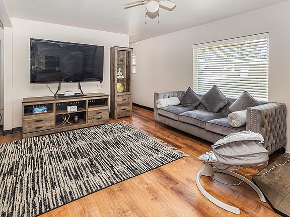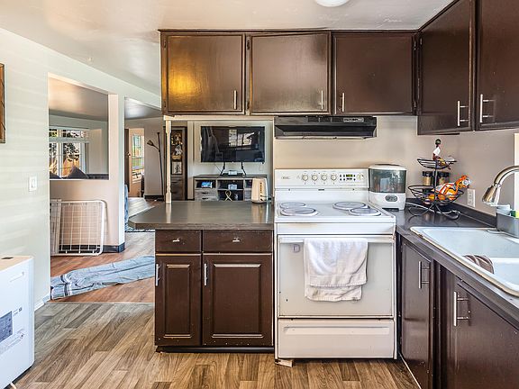 Nicely updated with new flooring and paint throughout. Kitchen and bathroom cabinets received a fresh painted look. A new wood stove and heating system was installed in 2021. A new trex deck on the covered front porch overlooks the inviting community green space. This lot arguably has the best view in the neighborhood. Easy maintenance rock landscaping has been installed on all sides of this home. A workshop space in back and a separate shed increase the outdoor storage space. Three large vehicles easily fit in the driveway and covered carport area. Seller says, ''Get it sold today!''. 2 parking spots. (More parking available for an additional charge.) All appliances included. Owner occupy only. NO SUBLEASE. Park approval needed with credit and background checks. $840 monthly space rent includes water, garbage and sewer.