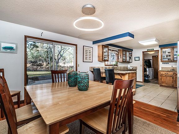 Ideal single level home in Sunset West on a private 1 acre lot. Enjoy this 3 bedroom, 3 bath, 1568 square foot home that sits on over a full acre in NW Bend. Cozy up by the real vintage fireplace in the sunk in living room. Open kitchen & dining overlooking the park like setting back yard. Back yard has walking paths between rock outcroppings, garden beds, greenhouse, covered entertaining area, multiple sheds and shed/shop with electrical. Large entry parking area perfect for RV, boat or trailers.