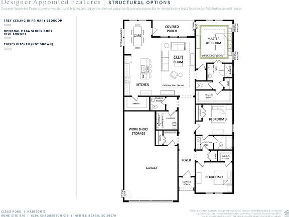 Popular Madison Plan. Offering 10 ft. flat ceilings Security System with first 6 mos. of monitoring free, tankless hot water heater. Great outdoor patio for enjoying sun, relaxing and entertaining. As you enter this home, there will be a wide foyer,and 10 ft. flat ceilings welcoming you. In the main living areas and including the Primary bedroom will flow Level 2 Revwood Laminate flooring. The dream Chef's kitchen has large walk-in pantry, upgraded cabinets, tile backsplash, Quartz countertops, spacious island for additional seating and serving . Open and spacious. Family Room brings in the outdoors with Mega Slider Doors leading on rear covered porch. Off from rear porch is a 30 ft. widex 9 ft. deep patio. Primary Bedroom has a double tray ceiling and laminate flooring . Primary Bath offers you a relaxing 5 ft. tiled shower and tiled bath floors, spacious linen closet as well. Guest bath and laundry room will have tiled floors. Baths have upgraded counter tops. Home is under construction and proposed to be completed January 2023. Ask agent about Builders Buyer Promotion !! Ouality Built Homes . Home is walking distance to resort style amenity center, which includes large clubhouse, state-of-art fitness center, 2 pools, walking/biking trail around a lake, , playground, horse shoes, bocce ball, volleyball. Clear Pond is centrally located to schools, shopping, and so much more.