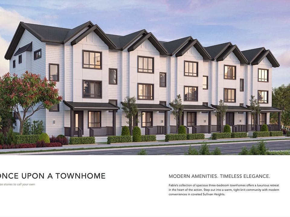 Welcome to Fable, a boutique collection of spacious three-bedroom townhomes designed for elevated living in the heart of Sullivan Heights. These 3-level homes pair classic farmhouse-inspired architecture with clean black-and-white exteriors and warm, modern interiors finished with soft woods and a neutral palette. Premium features include high-quality materials throughout and a luxurious SMEG appliance package. Enjoy two levels of curated amenities including a private playground, community gathering areas, bike racks, and outdoor seating. Steps from restaurants, shops, parks, schools, and everyday conveniences, Fable offers a complete lifestyle in a walkable, family-friendly neighbourhood.