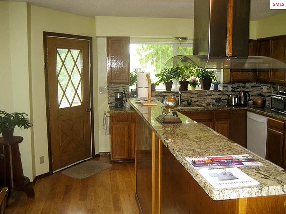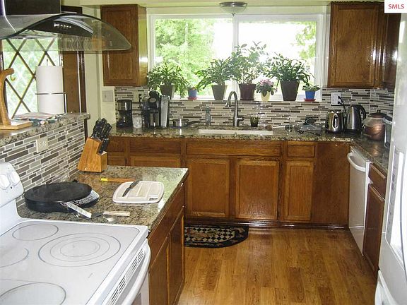 Single level 3 bedroom, 2 bathroom home in Careywood just South of Sandpoint. Comfortable 1,683 sqft with a newly remodeled kitchen that includes granite countertops, tasteful backsplash and all new appliances. Bright dining area that opens to the Living Room complete with a cozy wood burning fireplace and slider access to the freshly painted back porch and spacious yard. Fenced, raised garden beds make for a serene setting for entertaining, while the barn, once used for horses, adds a nice country feel. Detached 2 car garage with separate door bays and new tin roofing matching the new roofing on the house. Spacious 1200 square feet shop with unfinished living quarters and on it's own septic system. Great fully paved access to this almost 5 acres parcel on Blacktail Road a mere 2.5 miles from Highway 95.