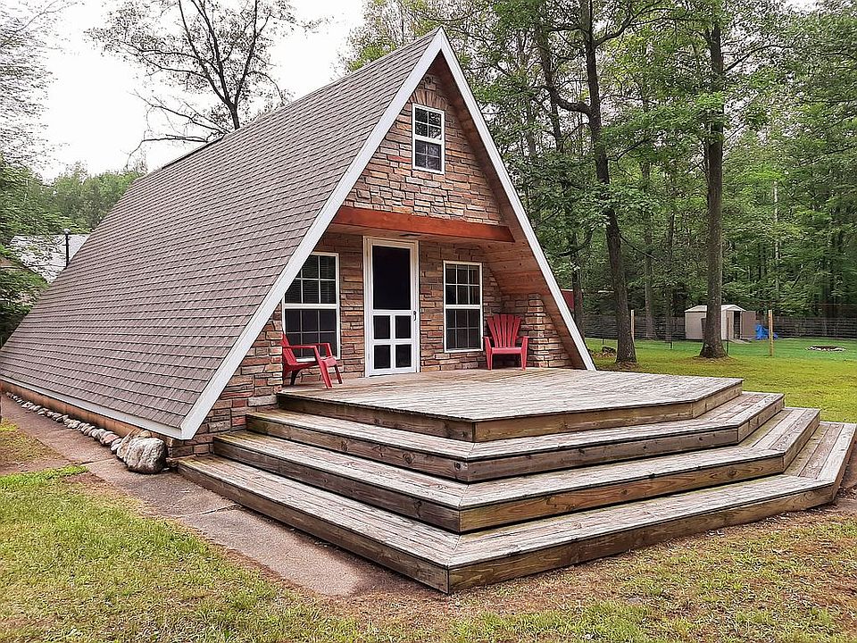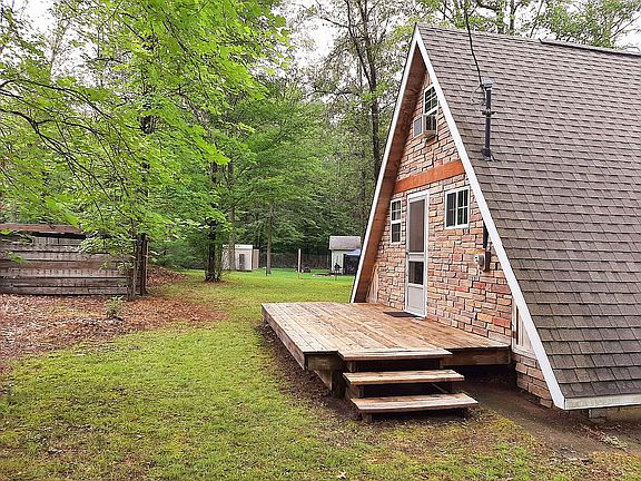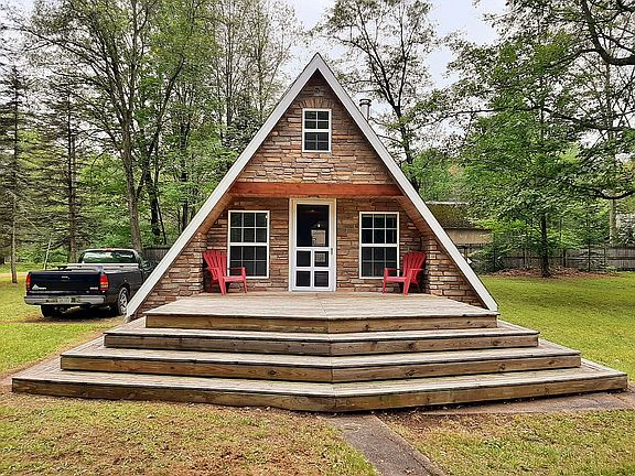 A custom weekend cottage or great starter home in lake of the pines. A fully furnished stone "A" frame on a shaded lot, with 1 bedroom , bath, living room, dining & kitchen combo on the 1st level and 2 loft sleeping areas on the upper level. An excellent getaway cottage for the weekends, to hunt, fish, boat, enjoy the heated pool, or the clubhouse activities.