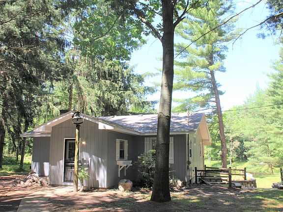 80+ acres of heaven in the woods! Peaceful setting away from the noise and crowd of everyday life. Within realistic commute to all of surrounding urban centers and I-69 corridor. If you have ever been to Northern Michigan, you will get the same feeling here! White Pine and a variety of conifers dominate the slightly rolling landscape. Ground cover is full of lily of the valley and lush fern growth. Looking Glass river frontage is the entire Northern border! Kayak or canoe out your own backyard! Several ponds, one especially inviting on a hot summer day with a floaty! Hiking trails with easy maintenance, pine needle carpet for minimal need of mowing! A paradise of summer and winter activity are at your fingertips. Cross country skiing on the beautiful, pine lined trails will be outstanding! If you love nature, a natural setting and observing wildlife this is the home for you. Wrap around front porch has superb view of the largest pond on the property, beyond that is the Looking Glas