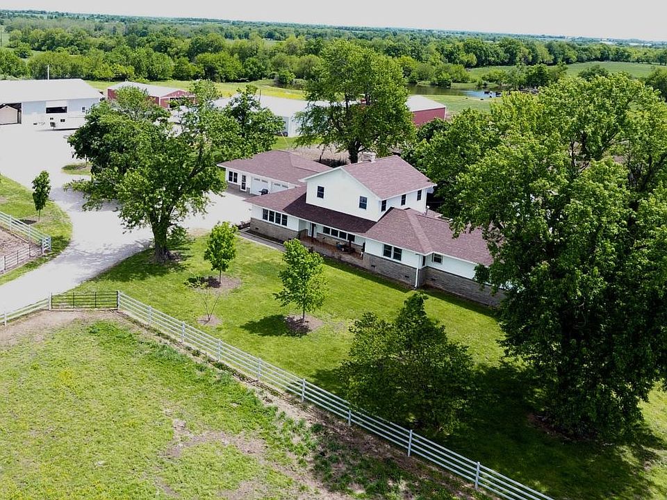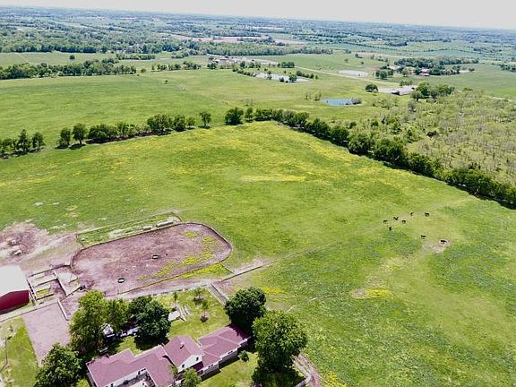 100 acre farm located 1/2 way between Springfield and Joplin Missouri. Land has 2 large ponds, 100X50 insulated/heated shop with 5 16X14 overhead doors, office and bathroom. Other buildings include a 60X42 plus 36X24 addition shop, 48X60 horse barn, 40X60 machine shed and outside riding arena, corrals and squeeze chute. Home has been recently updated with solid surface counters, hickory soft close cabinets and wood flooring. Land currently in pasture/hay has been in crop before. Land has access from HWY 97 and also Farm Road 2110. Apartment on side of garage for guest or 2nd living quarters. Home does not have electric owner will possibly work with buyers to have electric installed. Much of the land has new fencing.