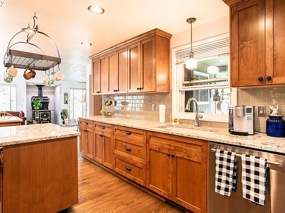 - Features: Family Room Kitchen Combo, Hardwood Floors, Sliding Doors, Wood Stove