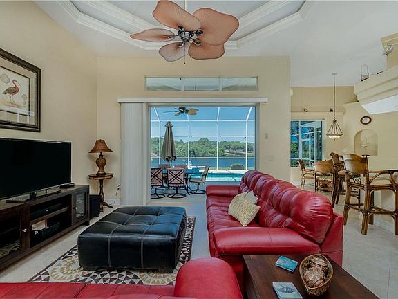 NEW ON THE MARKET! BEAUTIFUL FULLY FURNISHED TURNKEY LAKEFRONT POOL home in East Englewood. This 3BD/2BA/2CG custom built home is move in ready. As you enter the leaded glass double doors into the main living area, you can appreciate the volume ceilings, open floor plan, diagonal tiled flooring and all the custom accents. Great room has double tray ceiling w/double crown moulding, plant shelf, closet pantry & 8' sliding glass doors to Lanai. Gourmet kitchen has everything a cook could ask for w/raised faced cabinetry, granite countertops, breakfast bar & breakfast nook. Appliances include: Hotpoint smooth top stove, microwave, dishwasher & double door refrigerator w/water & ice. Breakfast nook has an aquarium window w/a beautiful view of the Lanai, pool & lake. Master bedroom has tray ceiling w/crown moulding & ceiling fan, 2 walk in closets & wood laminate flooring. Master bath has Roman shower, tiled flooring, double vanities w/solid surface countertops, garden tub & linen closet. Both Guest bedrooms have wall closets & ceiling fans; 1 has carpet, the other has wood flooring & sliding glass doors to Lanai. Guest bath has step in shower & vanity w/solid surface countertop. Inside laundry has built in cabinetry, tiled flooring & GE washer/dryer. Enjoy your first sip of coffee on the Lanai w/the picturesque view of the pool & lake. Float around in the caged heated pool which has a waterfall & solar cover. Other highlights are: A/C new in 2016, security system, manabloc plumbing system, irrigation system & hurricane shutters. Management company is already in place and the home has brought in around $17,000 per year in rental revenue, if you want to buy now but hold for future use!