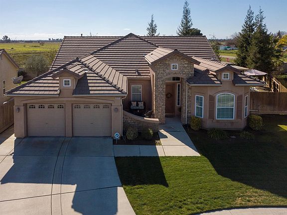 Come see a beautiful 3 bed 2 bath De Young home in the Brentwood Ranch development. You'll be impressed when you enter into the foyer that features a beautiful barrel ceiling design and offers a warm welcome. The home features a large great room with an open layout, high vaulted ceilings and gas fireplace. In addition, the kitchen offers granite countertops, upgraded recessed lighting, plenty of cabinets, counter space, and breakfast bar complete with pendant lights. Additional features include: formal dinning/flex space, office gallery, front yard patio, alarm system, & window coverings. You will enjoy the large backyard with multiple covered entertainment areas, mature landscaping with fruit trees & a shed for extra storage.It's a great yard space for both entertainment & play that offers countless possibilities. Conveniently located in the Central Unified School District, with easy commute access to hwy 99, & near by Marketplace at El Paseo for shopping and dinning.