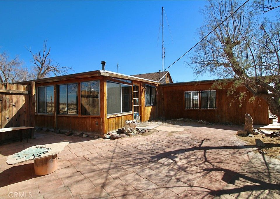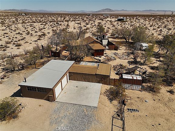 A place to make your home and enjoy the peace the desert provides. Gorgeous views of the Joshua Tree National Park and both Mt San Jacinto and Mt Gorgonio on 2.5 acres! Looking for unique, quirky, different than most? This home has a bedroom area (walls are open), full bathroom, rustic kitchen with an antique stove, rock counters and a lot of nice wood, inside and out. Add a couple walls and make it a 2 bedroom. The Heating and cooling mini split unit works great, a beautiful wood stove to keep it cozy on cold winter nights. Includes 2 Rv hookups w power and water in the yard, a detached off-roader’s dream garage and workshop with mechanic’s auto bay. A carpenter’s dream workshop with tools included. Property has a fence, many mature trees, outside laundry area and several storage areas including a shed. Looking for your own desert hide away? Come take a look at this gem.