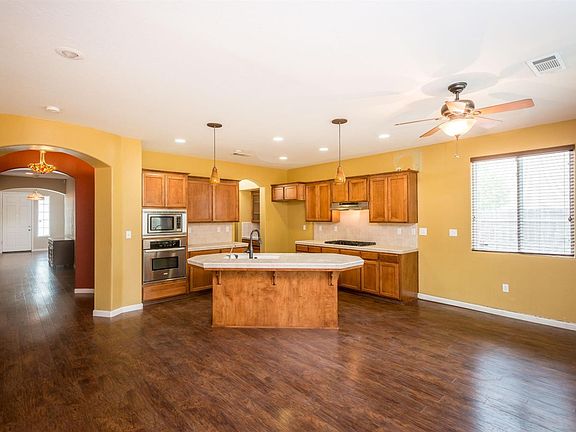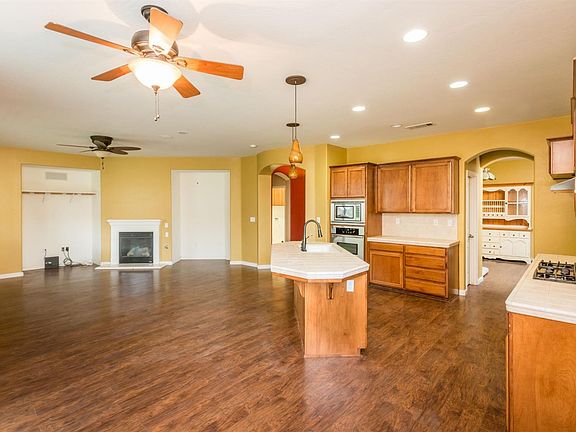 This warm and inviting 4 bedroom 3 bath home has beautiful laminate wood flooring and a great open floor plan. The kitchen has stainless steel appliances, a gas cook top, a pantry, tile counter tops, a practical center island, and is perfect for entertaining. The home also comes with a formal dining room and eating area. The large master suite comes with a walk in closet and retreat-like bath tub perfect for relaxing after a long day. The two other bedrooms are isolated near the front of the home with a Jack and Jill bathroom in between. The mature landscape, large backyard, and the substantial covered patio is a great place for entertaining. Large RV parking on the side of the home is a bonus! This is a beautiful home ready for a new owner.