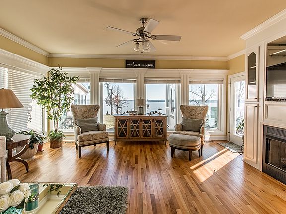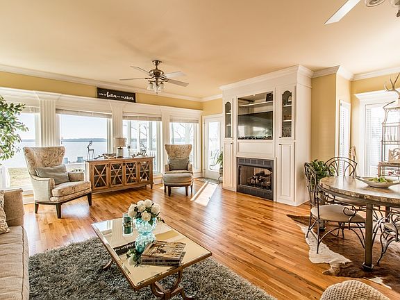 Incredible water views!! Beautiful home features a fantastic open floor plan, 3 BR (1 BR on main & 2 BR upstairs) w/ 3 full baths. Large Family Room is just breath-taking w/ panoramic view of TN River, hardwood flooring & gas-log fireplace. Kitchen has been updated w/ tile backsplash, granite tops & stainless appliances. The isolated Master Suite has wonderful views of the river, vaulted ceiling, large clsoet, wood flooring & ceiling fan. The Master Bath includes double vanity & tiled shower. Entertain all you want w/ screened porch, open sun deck & courtyard. This home also has a 2-car garage and metal roof. The HOA fees include lawn mowing, pool, community boat dock & common grounds.