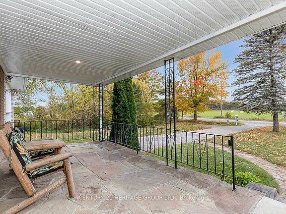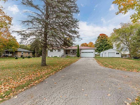 Location, Location, Location!! Just over an acre, steps from the No Frills plaza. Gorgeous rural lot with mature trees and 26x24 ft Quonset Hut with hydro, cement floor, man-door- would make an ideal workshop or home based business. Enjoy your huge covered front porch or your tiered deck with a spectacular view!! This 3 bedroom bungalow has limitless potential and enjoy the best of both! Country living, only steps from shopping, restaurants and so much more! Easy commute to the city. Bathroom in the basement is under construction and will be operational before the requisition date.