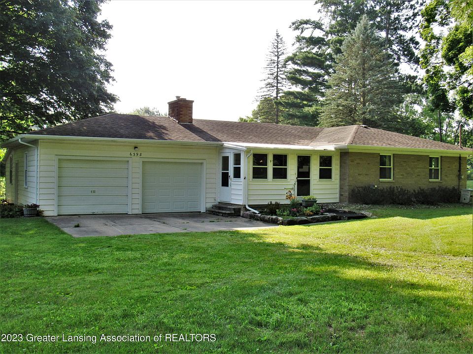 Expansive frontage on the Grand River with wide flat yard from house to river but NOT in the flood plain. Private road. Large enough for a hobby farm with almost 2 acres and a barn. This one-owner home has a stone fireplace in the living room with an insert that helps heat the whole house. Walls are plaster. Kitchen stove hood vents to the exterior. Hardwood floors in bedroom and under carpet in living room. 2-1/2 car attached garage plus large attached sunny workshop and storage area. Three-season porch on side facing the river. Enclosed porch on side facing road. New gutters installed 2022. You can launch from the front yard and float down past the Waverly boat club and beyond. This home needs some TLC and is being sold as is. The sale includes two parcels: 080-0 10-400-021-00 and 080-080-600 - 030-00. One parcel includes the house and 1 acre right on the river. The other parcel is 0.89 acres and is across the private road where the barn is. There is electricity in the barn.
