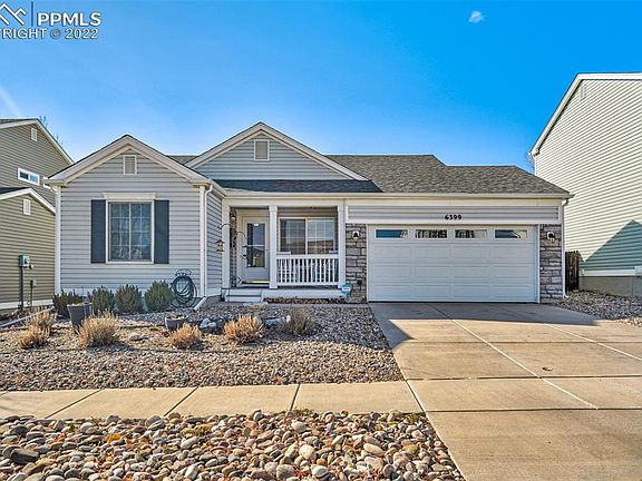 This well maintained home is conveniently located in the Ridgeview at Stetson Hills neighborhood. Near the powers corridor for easy access to everything, yet tucked back in the neighborhood to allow quiet enjoyment of the perfect Colorado evenings! As you approach the home, you will notice the beautiful exterior including stone accents, 2 car garage, xeriscaped yard, and private covered patio, a perfect place to enjoy your morning coffee. After entering through the covered front patio, check out the open floor plan, newer carpet, stainless steel kitchen appliances (2021), newer stainless steel farmhouse sink, newer window coverings, bonus air conditioning (2017), freshly painted walls, and large sliding door leading to the big backyard! This home includes 3 bedrooms and 2 full bathrooms. The Master Bedroom comes equipped with a spacious walk-in closet and private bathroom. A dedicated laundry space completes this conveniently designed rancher. Don't forget to check out the backyard! Perfect for just about everything! Enjoy hosting on the oversized newly poured patio, watch family or friends play on the custom playhouse, or tend to your garden in this versatile outdoor space! Just don't try to watch the grass grow as it is actually newly installed artificial turf which helps lower those summer monthly utility bills. If real grass is more your style, don't fret, as this home comes complete with an auto sprinkler system that is waiting to be utilized again, if desired. The community includes multiple parks, quick access to the Sand Creek Trail, and is within miles of multiple schools, restaurants, shopping centers, the home of the Vibes, and the Cinemark IMAX theater. This home is a must see! Make sure to check out the virtual tour to conveniently walk through the home!