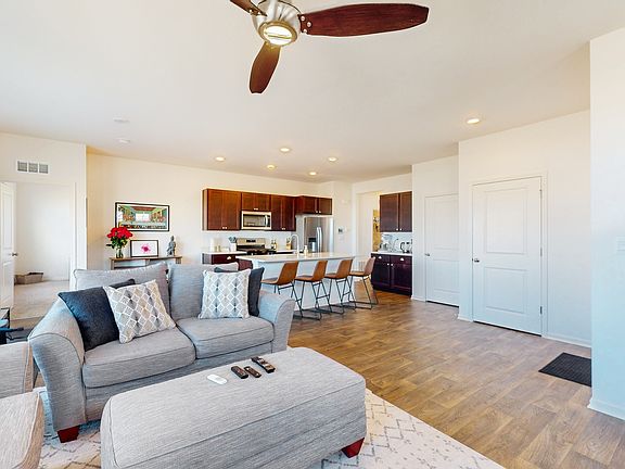 WHY WAIT TO BUILD WHEN YOU CAN MOVE RIGHT INTO THIS STUNNING TWO-BEDROOM, TWO FULL BATH RANCH HOME. PRICED WELL BELOW THE NEW CONSTRUCTION. Open floor plan really makes it enjoyable for entertaining. Be able to cook, serve, and feel a part of the party with open concept. The kitchen has a huge island with stools and quartz countertops. The bedrooms are split for privacy. The primary suite has its own bathroom with walk in closet. There is a separate laundry room and attached garage. The house has custom window treatments and ceiling fans. The patio is great in the summer for extra entertaining space and enjoyment. The home has Smart home Technology to be able to monitor and control your home if you are away. Thermostat, blinds. Client loves the area but is moving out of state.
