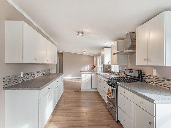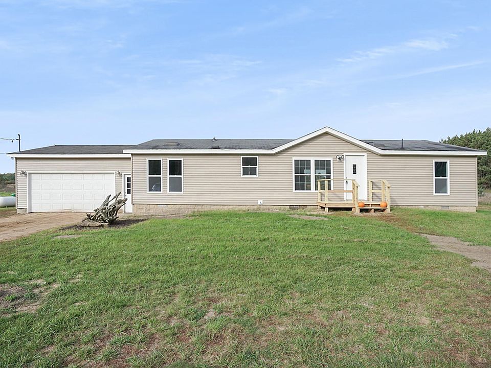 Updated modern looking home on 1.23 acres in Howard City. Features open floor plan w/vaulted ceilings, foyer & desirable white trim. New laminate flooring & carpet throughout, new paint, trendy light fixtures, stainless steel Whirlpool appliances, pull-down kitchen faucet, trendy bathroom vanity, new kitchen cunter & cabinets, faucets & tile backsplash. Includes main floor master suite w/walk-in closet & large master bathroom with separate shower & tub. Skylights in kitchen & both bathrooms let in lots of light. All new windows & new slider door that opens up to deck overlooking large backyard. New siding. Attached 2 stall garage. All appliances included.
