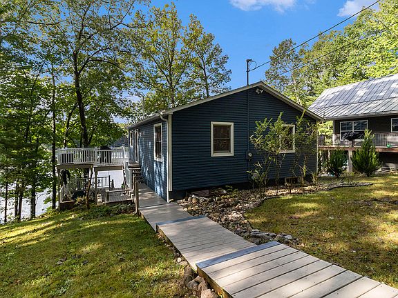Nestled on the serene shores of Blue Lake, this stunning 4 BR, 3 bath home offers an idyllic retreat where modern comfort meets natural beauty. Enjoy the tranquility of a private, no-wake lake, perfect for peaceful moments and outdoor adventures. Most everything has been updated, ensuring a fresh ambiance throughout. The living area boasts large windows that frame breathtaking views of the lake while filling the space with natural light. With generous deck space, you'll find ample room for entertaining, relaxing, or unwinding with a book. This home comes mostly furnished, providing you with a seamless move-in experience. At the waterfront teeming with aquatic and bird life, you'll find a tip in dock and kayak/SUP rack. The Blue Lake Association also offers access to an adjoining 250 acres of recreation trails and hunting areas. Whether you're seeking a vacation getaway or a permanent residence, this property offers a superb blend of comfort, beauty, and adventure. Don't miss the opportunity to own this incredible home. Call today to schedule your private viewing and start living the lakeside life!