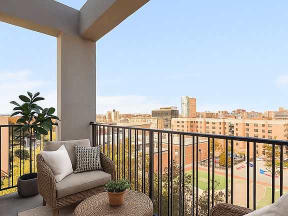 The kitchen is outfitted with quartz countertops and backsplashes, custom oak cabinetry, Hansgrohe fixtures, and a full suite of stainless steel appliances. The bathroom is a calming retreat featuring elegant finishes and a deep Kohler soaking tub. Every home at Flora includes multi-zone heating and cooling, and all residences enjoy the rare luxury of private outdoor space.