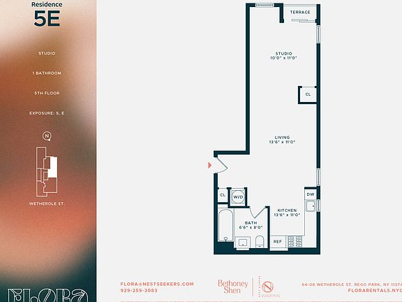 Perfectly positioned on a tree-lined street in Rego Park, Flora provides easy access to nearby shops, cafes, and parks while remaining just minutes from Flushing Meadows Corona Park, Queens Center, and public transit including the M and R subway lines. Whether heading into Manhattan or exploring nearby neighborhoods, Flora is your serene home base rooted in convenience and connection.