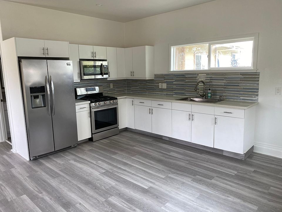 Remodeled unit with washer dryer and full kitchen. Tenant pays utilities divided with main house. Utilities divided per person. Example: if main house has 3 people and rental has 2 then rental will pay 40% main house will pay 60%. Tenant pays electric gas and water. Landlord will take care of yard service and solar bill.