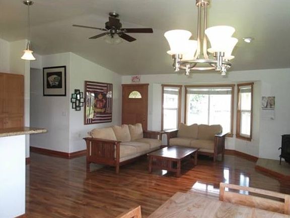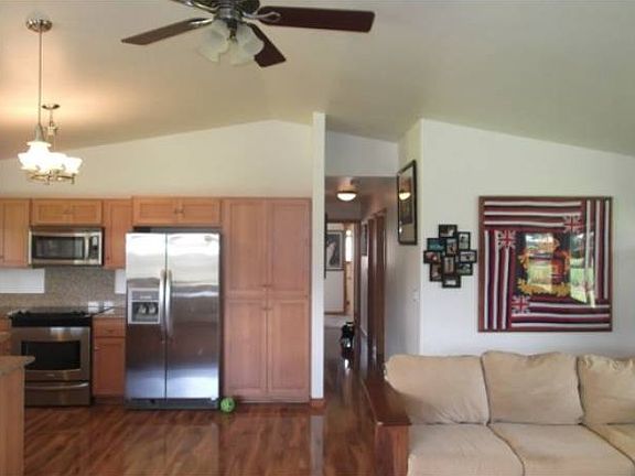 Looking for a comfortable quality built home? Check out this home built in 2008 with a focus on attention to detail. Located minutes from Waimea and landscaped with a yard your curb side appeal is neat and the home is ready to go. Elegant Alder wood kitchen cabinets, granite counter tops and the exotic walnut laminate flooring make a practical home also beautiful. Stainless steel Elite appliances, dual pane windows, wood baseboards and window trims are added accents. A Jotel 400 wood stove warms the living room. A covered outdoor lanai leads out to a fully fenced back yard. Ceiling fans with light packages in bedrooms and in living room. Indoor laundry room. Full enclosed garage with automatic door great for storage or vehicles.
