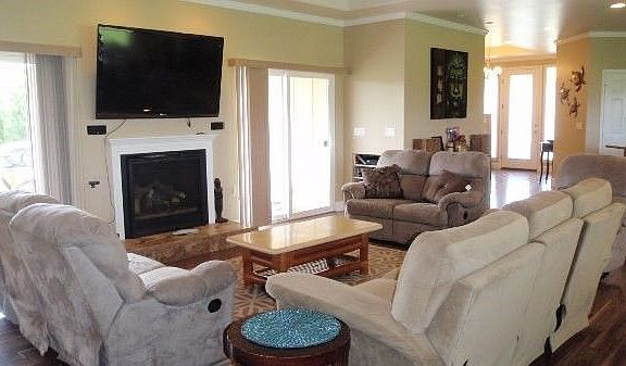 Very well constructed, custom, single level family home with 2,278 s.f. of living area, with crown molding, granite countertops, fully insulated, dual pane windows, 9 foot ceilings, fireplace, and fiber cement exterior siding on a fully fenced 1+ acre of land. Three bedrooms plus den/office, 3.5 baths, large kitchen pantry, spacious covered lanai, and a large 3-car garage makes this an ideal family home and great for entertaining.Other features include a cost saving photovoltaic system (owned, not leased) and a solar water heater.