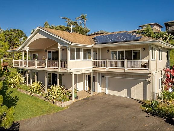 EXECUTIVE-STYLE HOME with top-quality construction, 12' vaulted ceilings, monkeypod flooring, 26-panel Photo-Voltaic system with Net Metering. High-end components and fixtures throughout! Well-designed open floor plan features a gourmet kitchen, ideal for entertaining! Incredible views from both upstairs and downstairs, with a whole-home built-in dehumidifier system, and a gas fireplace to add charm to those crisp Waimea winter nights when 13,803' Mauna Kea is graced with snow. Relax, pour a cup of coffee and kick back and start your day on your large private and covered lanais (1228 sf total), and take in the trade-wind freshened air and ever-changing skies!