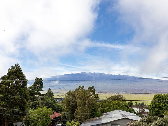 Second story of home includes kitchen, dining area, living room and primary bedroom with vaulted ceilings for a bright open and spacious area. Tiled lanai to enjoy Mauna Kea views at the front.