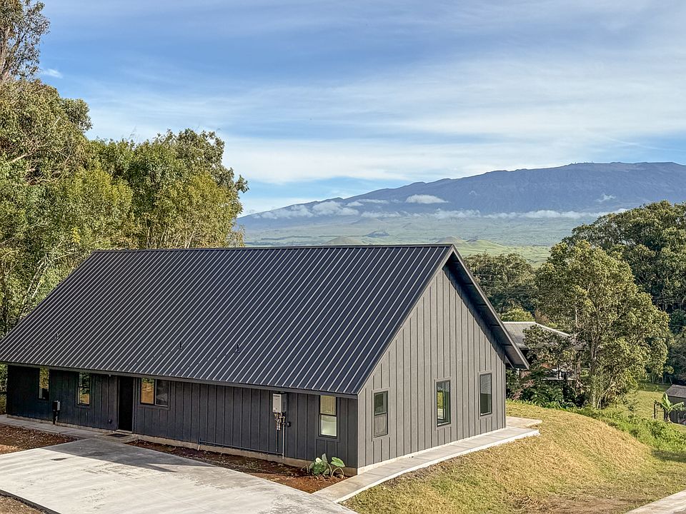 This brand-new construction offers an unparalleled blend of luxury, comfort, and breathtaking natural beauty. With gorgeous views of Mauna Kea, this meticulously designed 1,800 sq. ft. home provides the perfect setting for modern island living. This home features vaulted ceilings and a thoughtful split floor plan that ensures privacy and functionality.