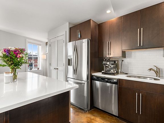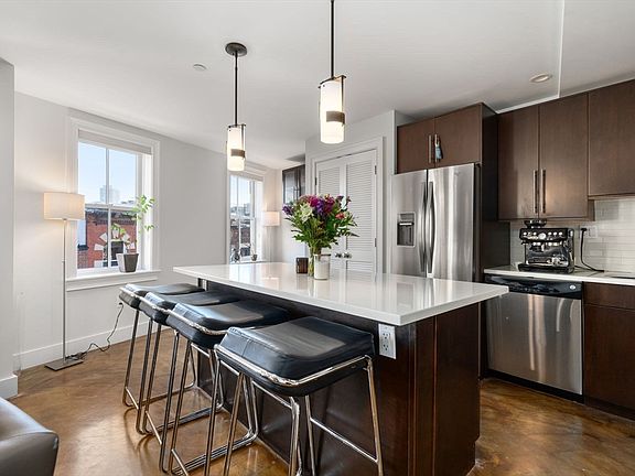 Welcome to your oasis of comfort and convenience in the vibrant North End! This meticulously updated 2-bedroom condo resides in a charming 10-unit, professionally managed elevator building, surrounded by acclaimed restaurants and bars. Spanning 850 SqFt., experience the epitome of penthouse living, bathed in natural light. Contemporary polished concrete flooring harmonizes with the sleek quartz island, stainless steel appliances, gas cooking, and central air for a seamless blend of style and functionality. Indulge in the spa-like bathroom featuring a luxurious walk-in steam shower, accompanied by a soothing rain shower-head and elegant mosaic tile surround. Just moments away, the communal roof deck invites you to savor breathtaking panoramic city vistas. Complete with the convenience of an in-unit washer/dryer combo and exclusive storage space in the basement, this residence encapsulates modern urban living at its finest.