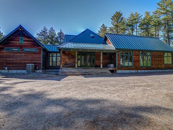 Welcome to Two Tall Pines a private and gated year-round estate offering 32 acres of pristine forest and waterfront where you and your guests can roam isolated from the world. Swim, fish or kayak from your 1300 feet of frontage on peaceful Beaver Pond. Just minutes from skiing, restaurants, the village of Bridgton and access to the many lakes of the region minutes away. The main home is architecturally spectacular; a perfect marriage of sophistication and lake charm. Entertain in the chef's kitchen with commercial grade stove, sub zero fridge and freezer, prep sink and yards of carefully selected granite. Every inch of this home is remarkably appointed. Expansive windows and decks invite the beauty of the outdoor inside. Views of snow-capped Mt. Washington and Shawnee Peak ski area from many vantage points. Other amenities include an adorable 900 sq. ft. year round guest house, two large carriage houses (each with 2 bay garages) ready to have each 2nd floor finished to your own designs for more living space and deeper onto the property an existing waterfront grandfathered foundation and septic system for an additional cottage yet to be built.