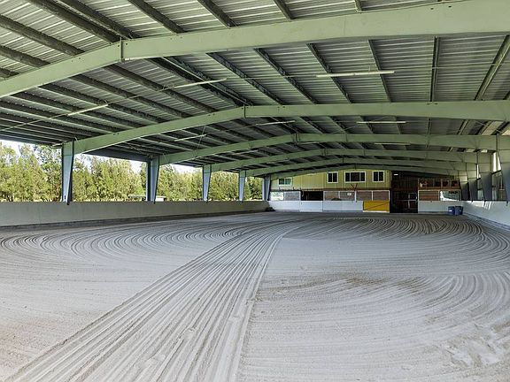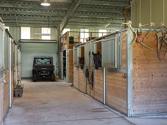 Spend your days enjoying your very own riding arena (75x150) complete with European kickboards and footing that was replaced within the last few years. After a good ride your horse can enjoy a hot water wash before being put up in one of the 8 stalls. Separate tack room, feed room, laundry, bathroom and vet rooms round out the lower level of the barn. Upstairs you will find a space that could be used as an office or viewing room to the arena or barn manager's suite.