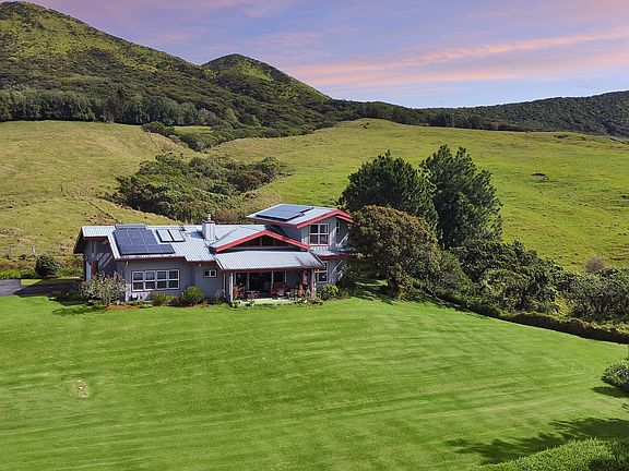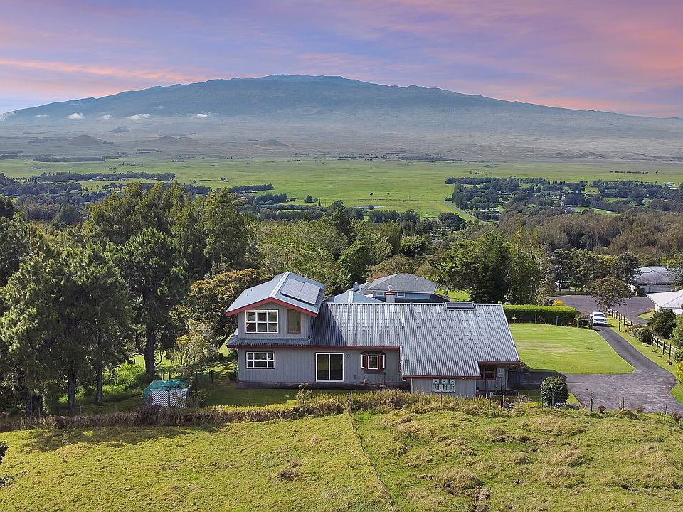 Heading upstairs, at the top left you will step into the primary bedroom with a large, private bathroom, and just down the hall is your 4th bedroom - that has also doubled as a great office space with its own views of Mauna Kea. The massive ranchland area behind you is expansive and picturesque, allowing you unsurpassed privacy. You may have noticed from the photos, it has a fully owned 25-panel photovoltaic solar system. Home is on Net Metering.