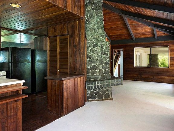 This charmer has two tax keys. The second tmk is 3-6-4-29-56 which is 15,638 sf. The yard is like a park. The house can use some changes, but it depends on what you want. It is being sold "as is". The koa living room, dining area, and kitchen are irreplaceable today. Two of the bedrooms are large and have fireplaces as well as glass doors for light. There is also an unpermitted room in the back with a small bathroom. This could be set up for anything you need. Currently, the internet and TV are both off of road runner. The old carpeting has been removed. The idea is to allow the flooring to be the choice of the buyer.
