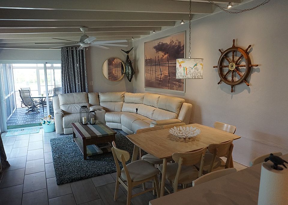 This home is currently under contract. We are also taking taking back up offer’s. Fully remodeled move in ready Key Colony Bungalow with boat lift and dockage for up to 50+ boat. This home is located on the highly sought after 7th Street location. We completely had this home remodeled from ground up including all new electrical, plumbing, foundation, walls and patio. This particular 7th Street duplex is like no other in design and maximum use of space and livability including all new impact windows, doors and large private screened patio with 10 foot sliding opening. 10k rated boat lift and new dock. We designed this home with no expense spared and have an excellent limited rental history with returning guests booked through 2021. We have decided to make the Keys our permanent home and regrettably selling our 7th Heaven to buy our permanent home. This house has very efficient newer mini splits, on demand hot water and full-size washer and dryer. Both rooms have king beds, private full baths with double vanities and lots of closet space. The third bedroom is a cozy room with twin daybed and office area. Selling fully furnished for a move in ready home.