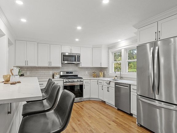 Walk in to this beautifully updated home to the bright, open concept kitchen, living room and dining area. The vaulted ceilings and natural light make this space! The newly upgraded kitchen with custom cabinetry, quartz countertops, a large bar, and all new appliances is functional and beautiful. From the dining area you can walk out to your brand new deck! 3 good size bedrooms and a brand new bathroom and updated 1/2 master bath complete the first floor. Downstairs the options are limitless! The large landing space and family room with built in shelving are light and bright and can be used as an extension of upstairs or maybe as a living area for the potential In-Law, Au-Pair, or ADU. This space includes a full bath, separate entrance from outside, bedroom, and space for a kitchenette! Outside you have a detached 3 car garage with a huge loft and 3 new doors with remote access. New 4 bedroom septic installed in 2025! Easy cut through path to the Loring School! Welcome Home!