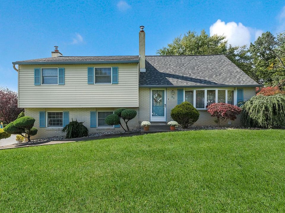 Pack your bags and move right in! You won't be disappointed with this beautiful, move-in ready 4 bedroom, 2 & 1/2 bath home in the desirable Lakeview Farms neighborhood. Located in the prestigious Council Rock School district, this home sits on a magnificent .56-acre lot that offers great curb appeal and views. As you enter the huge living room, accented with random width “pegged” hardwood floors, it’s easy to imagine how entertaining will “shine” with the massive front window bringing in the warm sunlight. A large dining room with a picture window adjoins the “chef’s delight” kitchen, featuring; stainless steel appliances, a smooth-top stove, granite counters, and cherry wood cabinets galore! This custom kitchen was built with thought, including pot drawers, recessed and under-cabinet lighting, as well as special cabinet built-ins that please! The upper level includes 3 good-sized bedrooms, all with nice-sized closets! An updated, tiled hall bath with shower over tub completes this level. Traveling to the spacious primary bedroom area - is your private retreat with plenty of natural light, a huge walk-in closet, an en-suite with shower over tub, and walk-up access to the attic (offering lots of storage!) The lower level includes an enormous family room with plenty of windows and is highlighted by the wood-burning stone fireplace. The family room also includes a powder room, and storage closets, along with basement and rear yard access. The basement contains the laundry area and has been recently completely painted. This would be an easy room to finish (the floor is already tiled) or keep it as is - either way – it’s great extra space! The rear yard has been meticulously maintained and includes a paver patio for your outdoor entertaining fun. Two sheds are included. A newer roof (approx 5 years old), along with a dual heating option to use either the electric heat pump or hot water baseboard, and very low taxes make this an incredible opportunity for the discriminating Buyer!