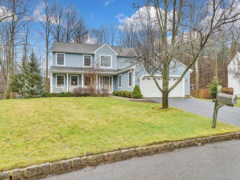 Beautiful Colonial has the floor plan everyone wants. Spacious, airy and offers more than enough space. Great curb appeal will warm your welcome. The covered front porch is where you have have your morning coffee and afternoon tea. Grand 2 story open foyer, formal living room and formal dining are in perfect view the moment you walk through the door. The perfect place to throw a party, enjoy a Holiday or just your closest friends. This kitchen is large, offers plenty of cabinetry and has an oversized breakfast bar. Family room is off the kitchen and flows beautifully with perfect views from room to room. Sliders lead to the back deck. New carpeting and freshly painted. Master suite with private master bath is clean and neutral. All additional bedrooms are ready for you to move right in.