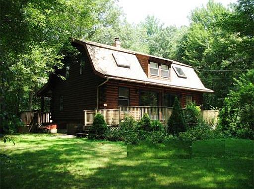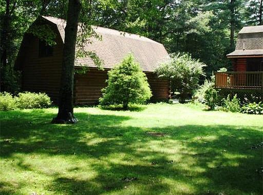 Escape to Home...a sophisticated 3 bedroom, 2 bath log house set on 1.16 private acres with oversized two bay garage and 14' x 31' bonus room above. The open concept floor plan features a spacious kitchen with stainless steel appliances and a dining/living area highlighted by a gorgeous wood stove and sliders that lead to a large front deck for extended "outdoor" living space. The partially finished basement with bamboo flooring, walk in closet and wine cabinet is the perfect all-purpose room (the current owners used it as a home theater) and a 22' x 33' rear yard deck overlooking the secluded back yard features a sunken hot tub. There's even a free-standing shed with electrical service to store the gardening tools. Whether your entertaining guests or just looking for relaxation, this home has something for everyone! A commuters dream with easy access to Routes 95 & 495 and minutes to Salisbury Beach, Newburyport, Amesbury and southern New Hampshire.