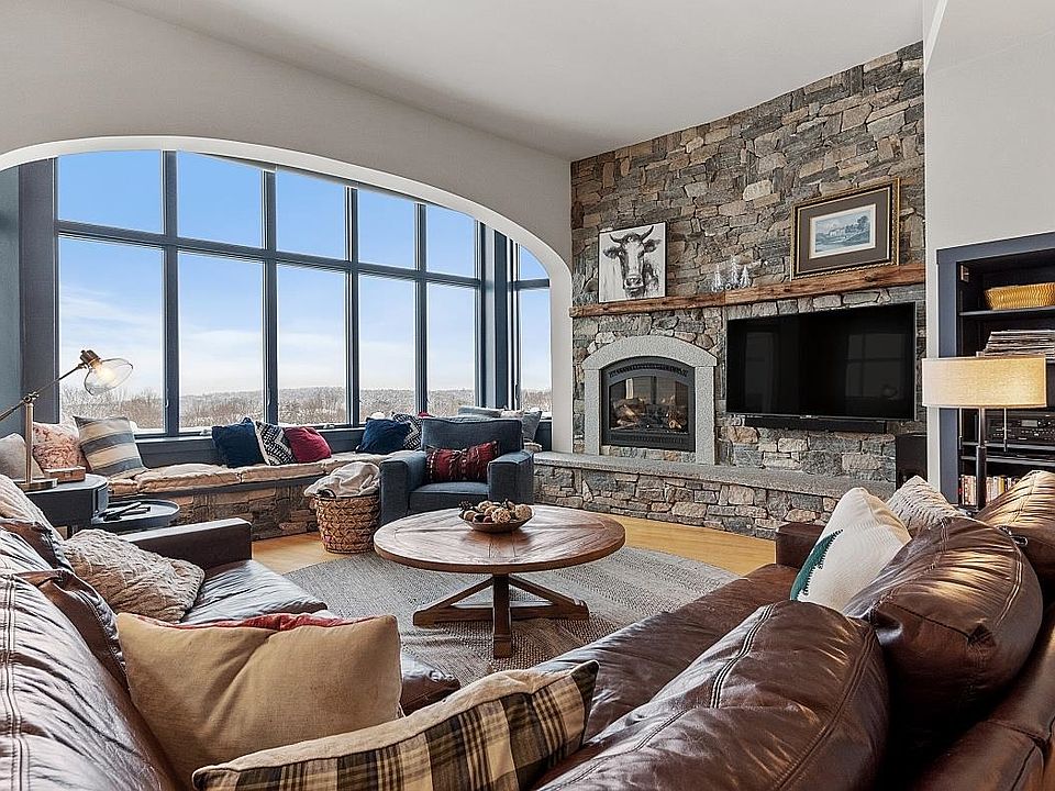 Welcome to Barnett Hill, where luxury meets timeless beauty in a setting that showcases the splendor of the Connecticut River Valley & the Green Mountain range - overlooking five of Vermont's premier ski resorts. Barnett Hill was designed with modern engineering & energy-efficient features. Constructed using Insulated Concrete Forms (ICF), ensuring durability & insulation, RenewAire system, radiant heat, & solar array contribute to the eco-friendly design. Upon entering the foyer, the grandeur of the home unfolds, with high-lofted ceilings & expansive soaring windows that frame 180-degree views of distant peaks & valleys. The open-concept design effortlessly connects the formal dining area, a generously sized gourmet chef's kitchen, & living room. The north wing features the primary ensuite, complete with a walk-in closet, & soaking tub. The opposite wing has two bedrooms, full bath, study, & laundry room. The lower level offers a perfect canvas to tailor the space to your preferences. Attached three-car garage & an additional two garage spaces on the lower level, one specifically designed for an RV with utility connections. The property encompasses 11 acres of meadows, woodlands, & mature gardens, creating a tranquil haven that harmonizes with the beauty of the surrounding conservation land & trails. This exceptional estate presents a rare opportunity to own a home with modern luxury, eco-conscious design, & panoramic views, offering a truly unparalleled living experience.