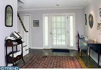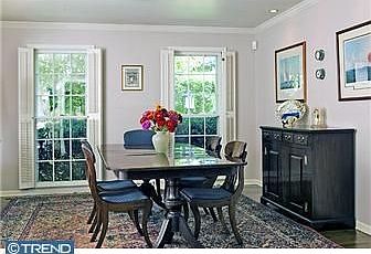 An enchanting William Thompson cape set in glorious gardens brimming with perennials in Hopewell's Elm Ridge Park. A wide foyer introduces the open formal rooms with walnut-stained wood floors, tall windows and crown moldings. A slate fireplace in the living room joins two others, including a walk-in fireplace in the family room through an arched brick doorway. A sunny breakfast nook and the kitchen classically outfitted with black granite and white cabinetry and a brand new dishwasher, adjoin a new powder room and laundry. There are new wood floors in the kitchen and family room A deck off the first floor master suite gives access to the pretty gardens. A hall bath serves a guest room, also on this level. Upstairs, three charming alcove bedrooms and a study space/playroom share a large bathroom with porcelain console sink. A peat moss septic system, installed in 2006, is a greener alternative to the norm.