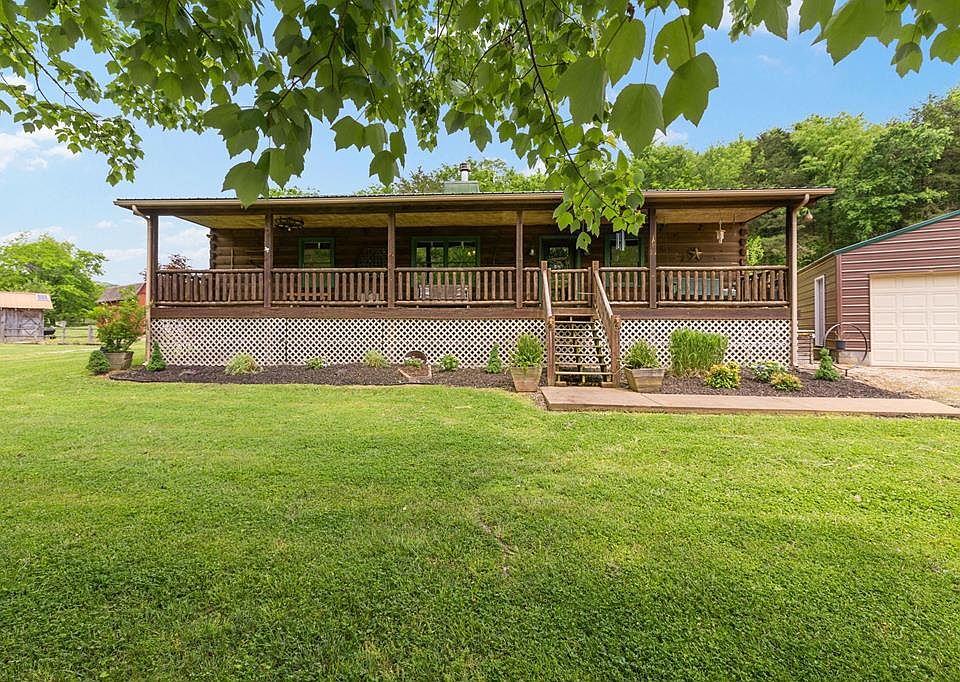 Inviting Log Home with Mini-Farm less than 1 mile to Cordell Hull Lake and less than 5 miles to Defeated Creek Boat Ramp and Recreation Area. 3 bedroom, 2 bath home features a kitchen with custom wood countertops, island, and separate walk in pantry/utility. Primary bath with walk in shower, infrared sauna & double vanity. Living room with stone gas log fireplace. Large screened in back patio with wet bar that is perfect for entertaining. 28x28 Detached 2-car garage/shop, tankless water heater, fenced raised bed garden with blackberries and raspberries, fruit trees, chicken coop, goat barn, storage shed, solar-powered activity shed. RV hookup (electric only). Experience tranquility and outdoor living with privacy.